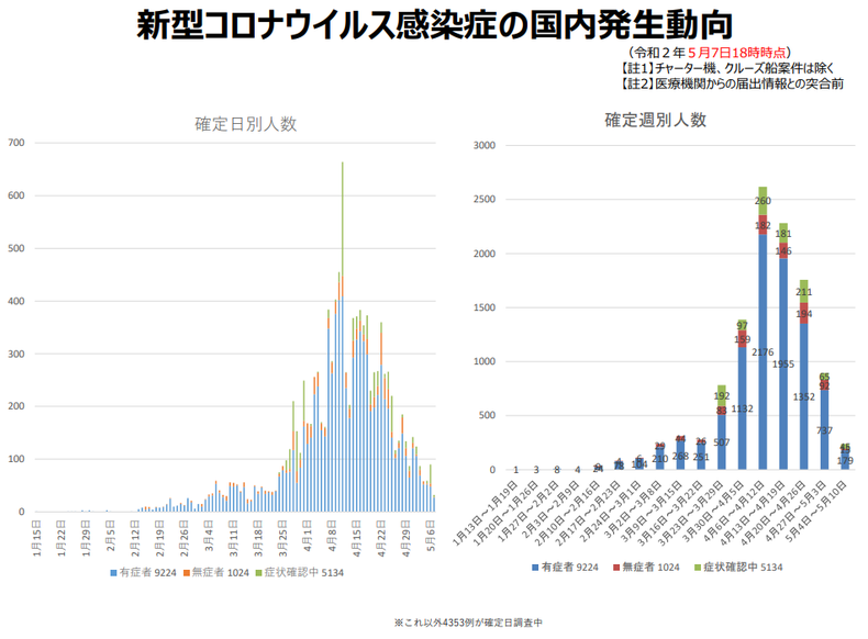 ニュースで聞く再生産回数や接触8割減について、自分たちでも計算し、グラフを書きました。