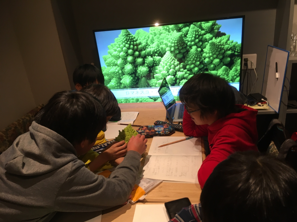 フラクタルについて学びました。これは、ある部分を切り取っても、自本物のロマネスコブロッコリーを見て、連続フラクタルの図形を描いてもらいました。