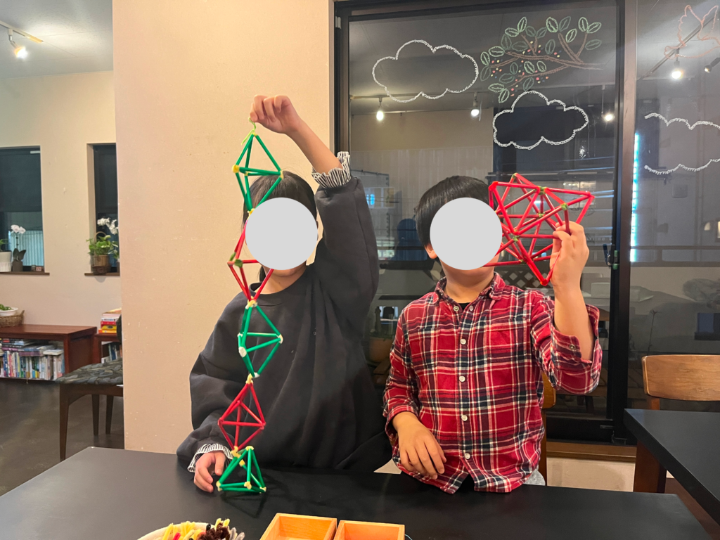 正八面体を組み立てるワークを行いました。